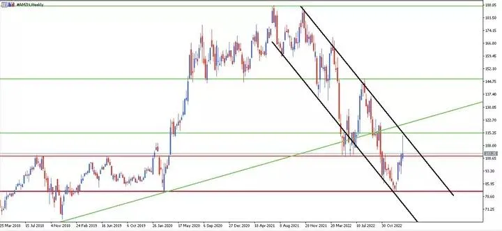 Sin embargo, desde finales de 2021, el precio se encuentra en un canal bajista, debido a las caídas generales de las acciones tecnológicas y a los malos resultados de Amazon. Esto junto al split de sus acciones (ahora cotizan a un precio inferior y, por tanto, son más asequibles) hace que muchos inversores consideren que es un buen momento para invertir en Amazon y ganar dinero.